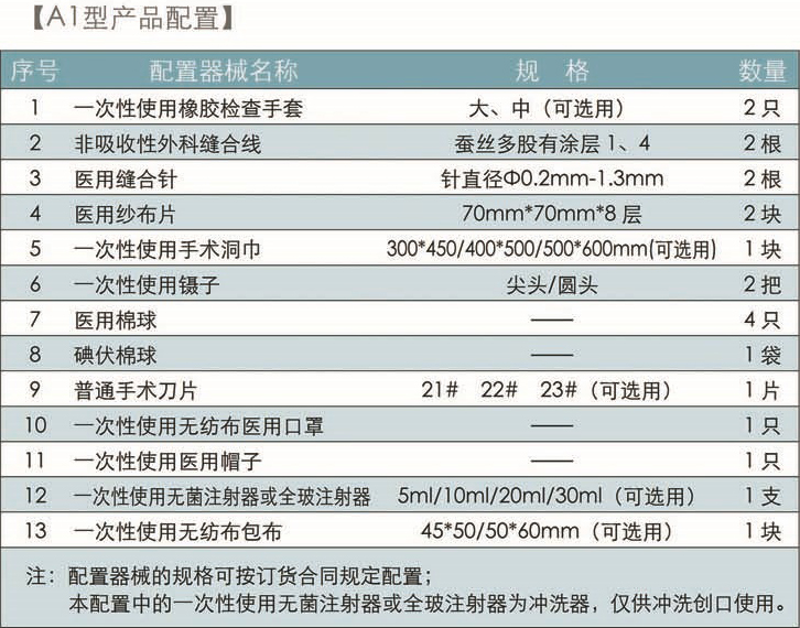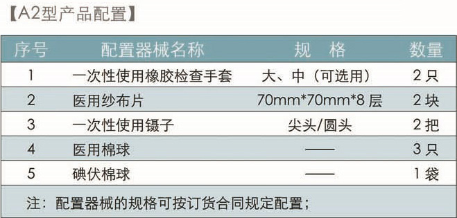 其中“清創(chuàng)換藥型”按配置組成可分為A1型、A2型、B1型、B2型。其產(chǎn)品可用于臨床換藥使用。